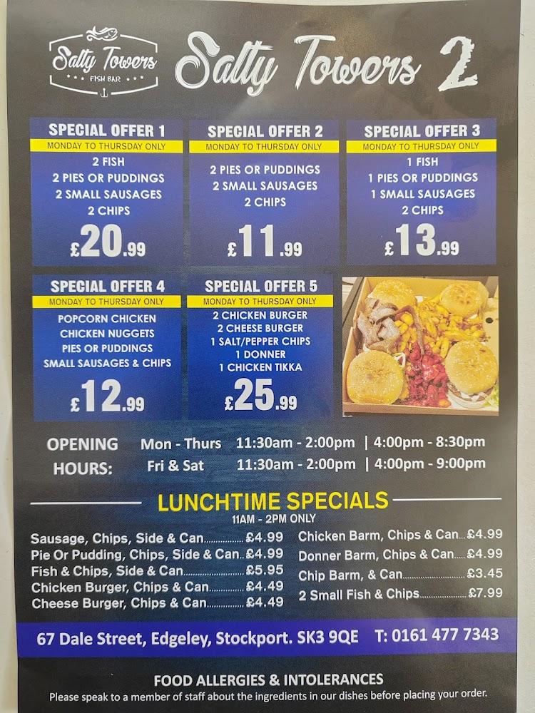 Salty Towers Fish Bar 2 sits in the heart of Edgeley, Stockport, a stone’s throw away from local amenities and bustling streets. This area buzzes with life, enriched by a community spirit that welcomes everyone. The restaurant embraces a casual vibe, ideal for dropping in for a quick meal or sitting down to enjoy your food with friends. Wheelchair-accessible seating ensures that everyone can partake in this local culinary gem. The diverse menu caters to all ages, featuring a kids' menu that ensures even the little ones are pleased with their meals. Parking is a breeze, with free street parking available nearby, enabling easy access for patrons. Whether it’s a busy lunchtime or a leisurely evening dinner, Salty Towers Fish Bar 2 stands out as a reliable spot for freshly cooked and affordable delights.
